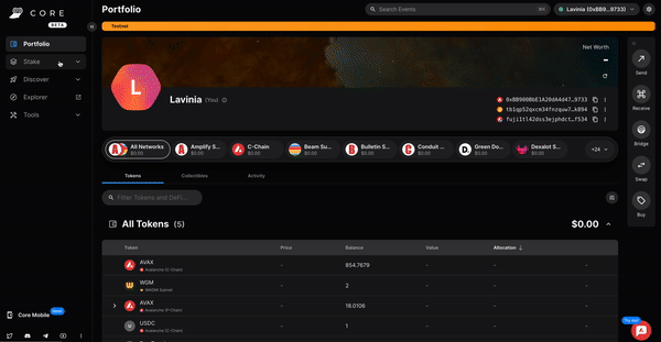 Core web is a free, all-in-one command center that gives users a more intuitive and comprehensive way to view assets, and use dApps across the Avalanche network, its various Avalanche L1s, and Ethereum. Core web is optimized for use with the Core browser extension and Core mobile (available on both iOS & Android). Together, they are key components of the Core product suite that brings dApps, NFTs, Avalanche Bridge, Avalanche L1s, L2s, and more, directly to users.